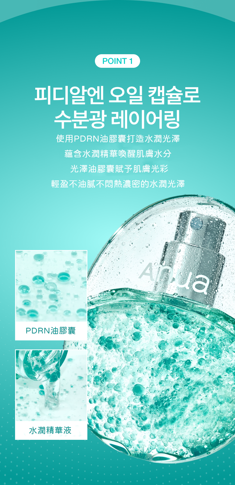 噴灑噴霧的瞬間PDRN油膠囊便會在皮膚上輕輕爆裂