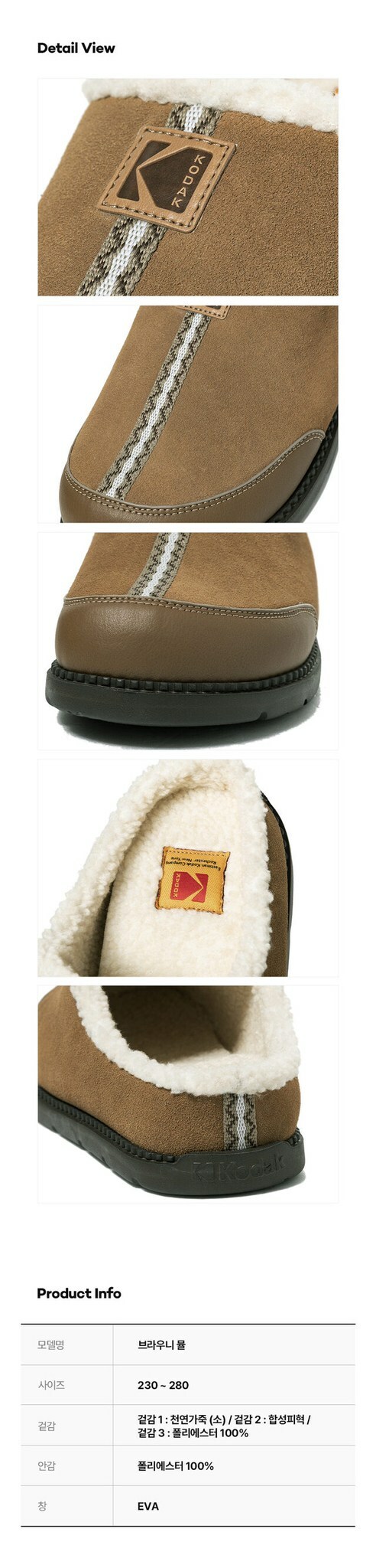 融合了天然麂皮和抓絨材質,圓頭造型增添了舒適感,