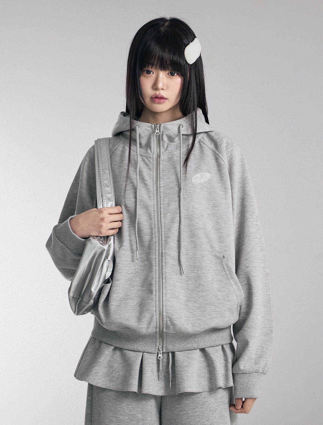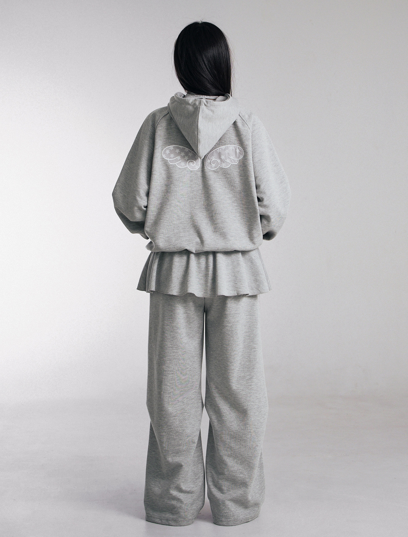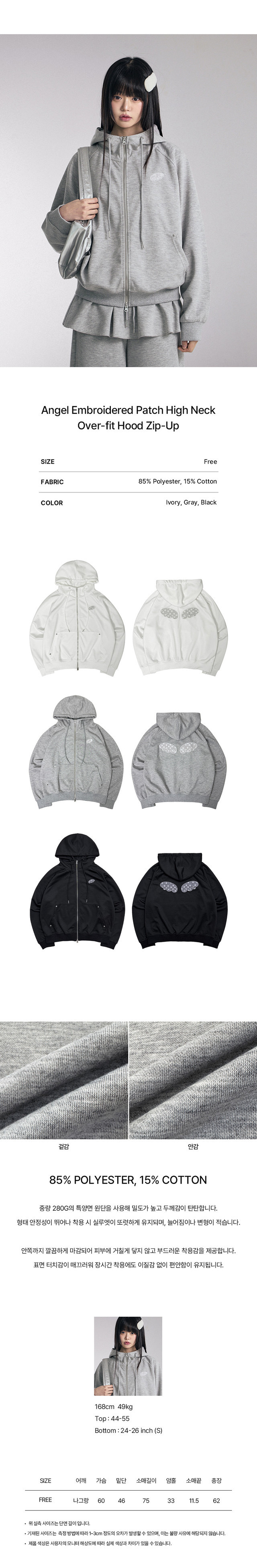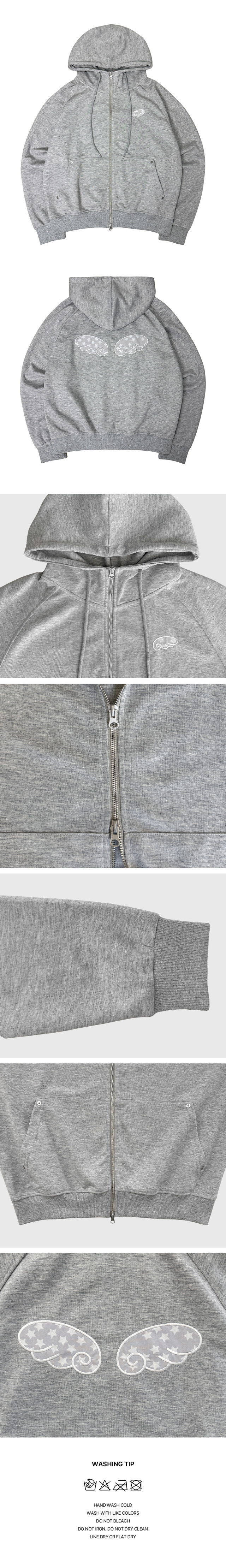Angel Embroidered Patch High Neck Over-fit Hood Zip-Up